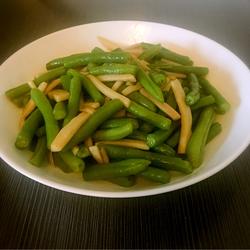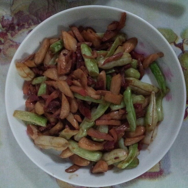 4、加入芸豆:将烫煮过的芸豆加入锅中,继续翻炒。