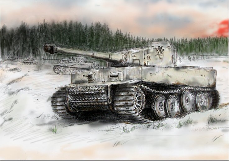 除了对虎式坦克本身的描绘,艺术家们还会通过环境渲染来增强画面的氛围,他们会描绘出战争的残酷和危险,如爆炸的火光、战场的废墟等,这些环境元素的描绘,使得画面更加生动、引人入胜。
