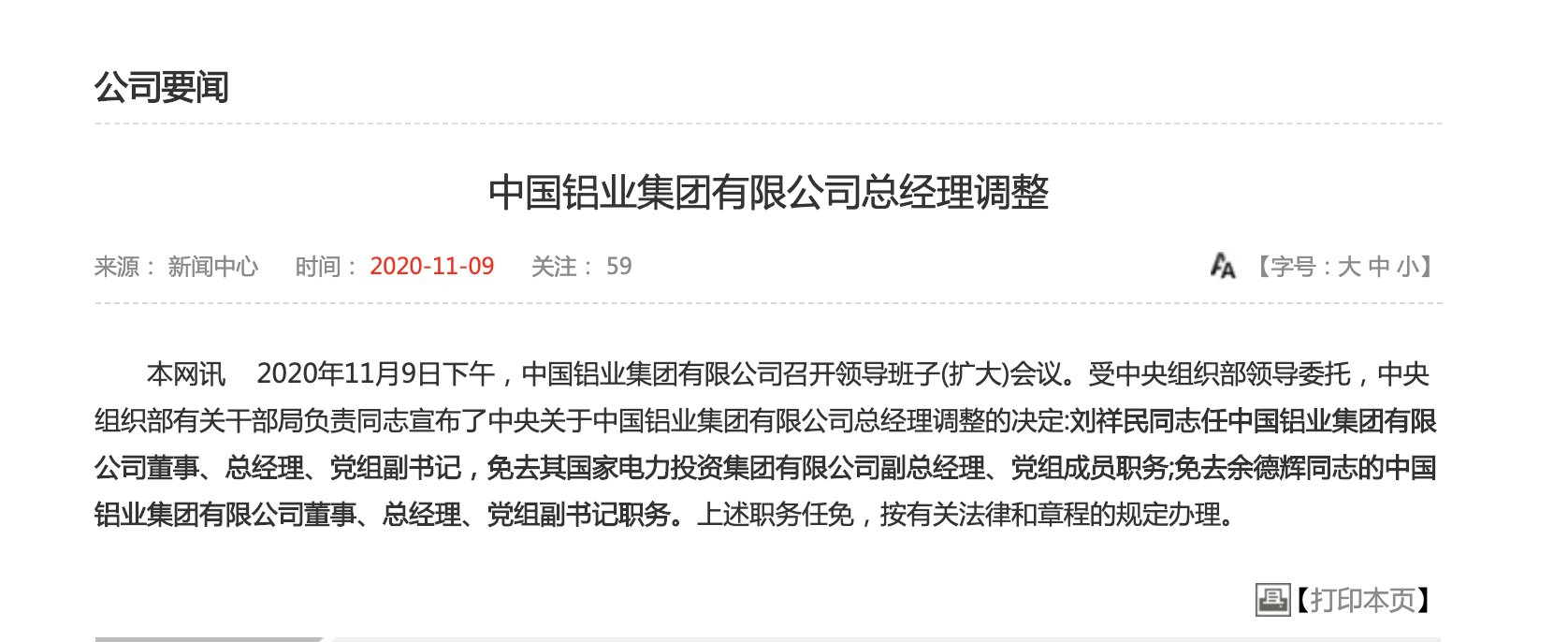 中国铝业重组最新消息
